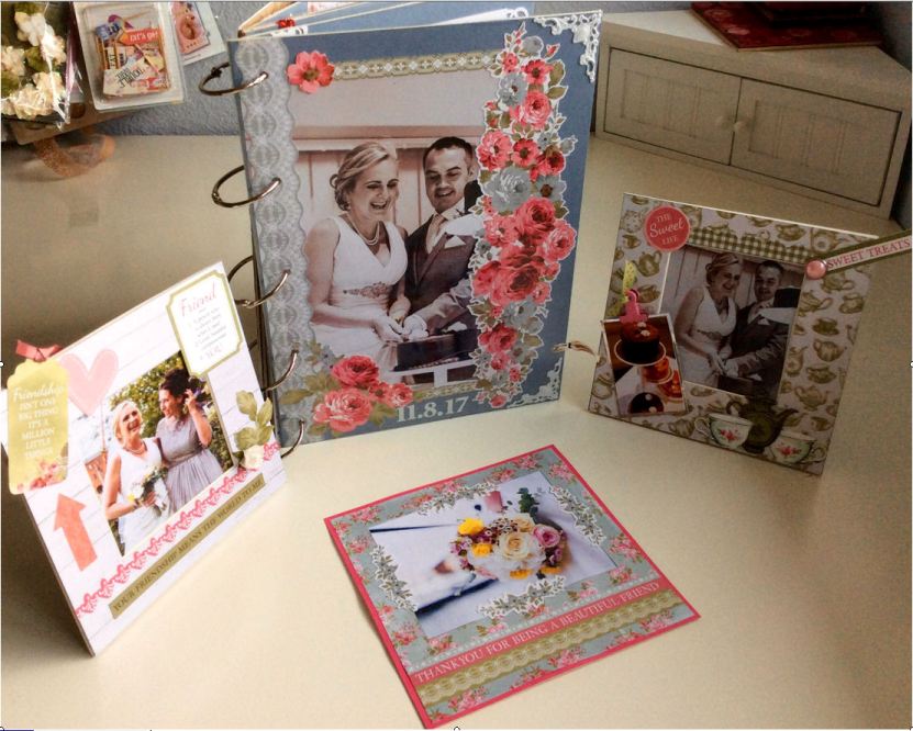 Louise Brigden used the High Tea collection by Kaisercraft to create a beautiful memory album from her wedding, along with two frames and card.