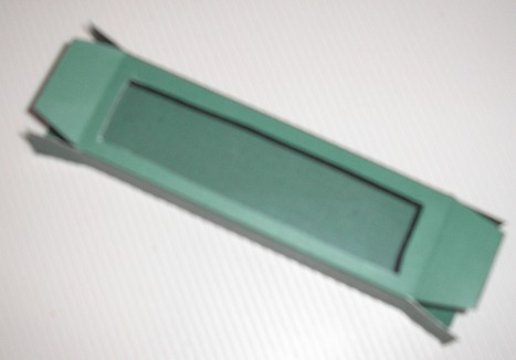 Cut a piece of acetate 1.5" x 5.75". Put double-sided tape around the rectangle. I have shown you the acetate laying next to the taped window below.