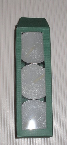 the box for the candles first. Cut a piece of cardstock into size 6.25" x 5.25". On the longest side score at points 0.75" - 2.25" - 3" - 4.5"