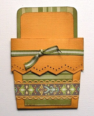 Class supply List: One 12" x 12" sheet of plain cardstock Two small pieces of patterned/contrasting paper. One length of ribbon measuring approx 11" K & Company Wild Raspberry Self-adhesive borders ((optional) K & Company 3-D flowers, or paper and embellishments to punch and created your own. Green paper for leaves. Any other embellishments of your choice.