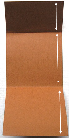Step 2 Fold and score 2" in from one end. Fold the other end up to the score line. You now have three parts measuring 2", 3.5" and 3.5"