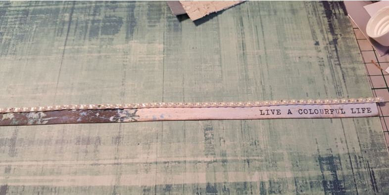 Adhere the pearl strand from your embellishment pack to the top of the strip.