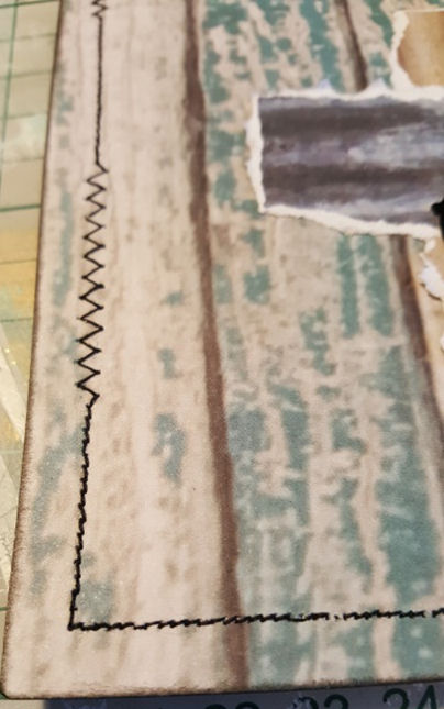 5. Finally I used my sewing machine to sew around the outside edges of my page,. If you do not have a sewing machine you can draw the stitches on and it will still have a good effect.