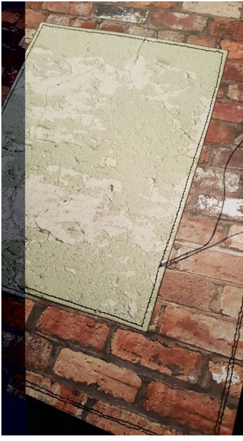 1. Cut a piece of the “Metal Panels” paper roughly 5x7 cm. Adhere to the “Knotted Wood” paper to the right of centre.