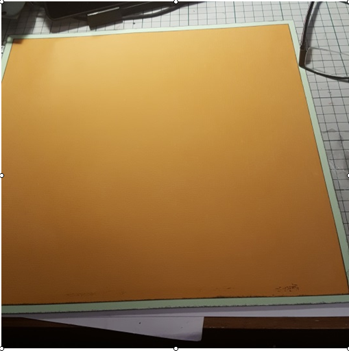 4. Cut the “Spiced Pumpkin” cardstock down to 11.5 inches square. Ink the edges of this piece and add to the 12x12 piece of “Avocado” cardstock.