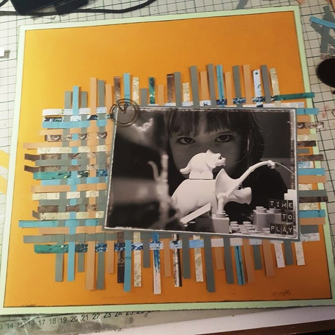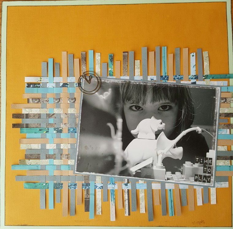 5. Finally I added one of the sentiment strips at the bottom of one of the 12x12 patterned paper pages to the layout.