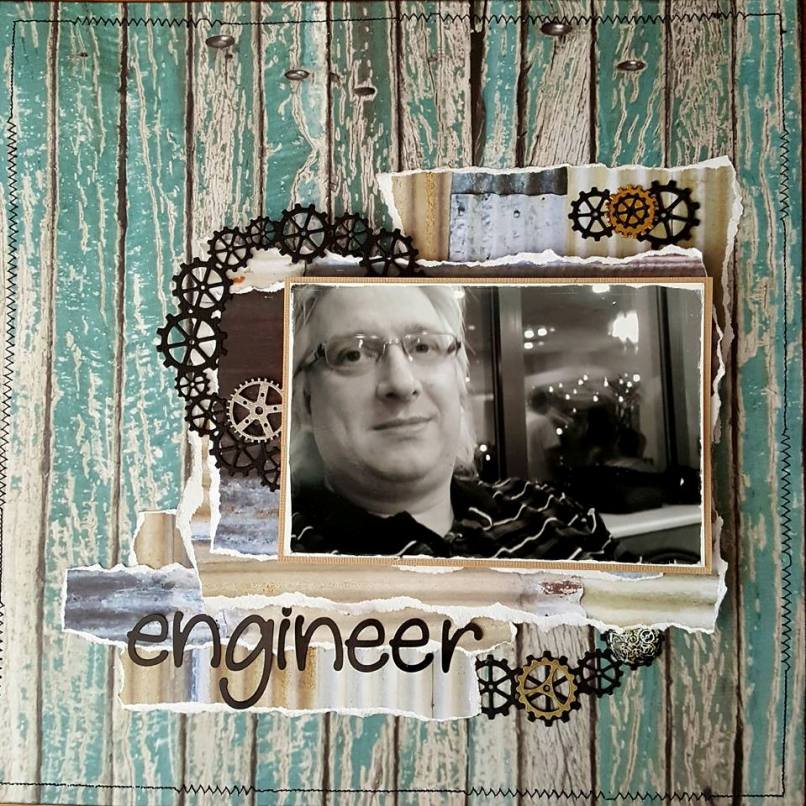 All embellishments are from the kit except for the word "engineer".