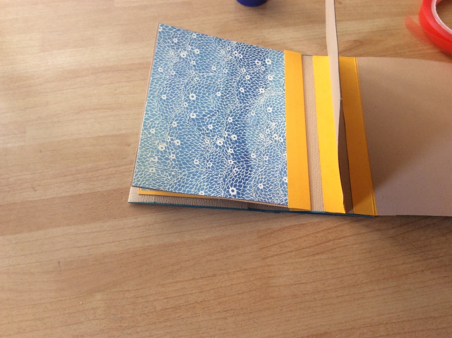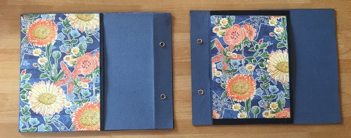 Cover the outside of the front and back cover in "Navy" cardstock - score one inch down first as on the covers.