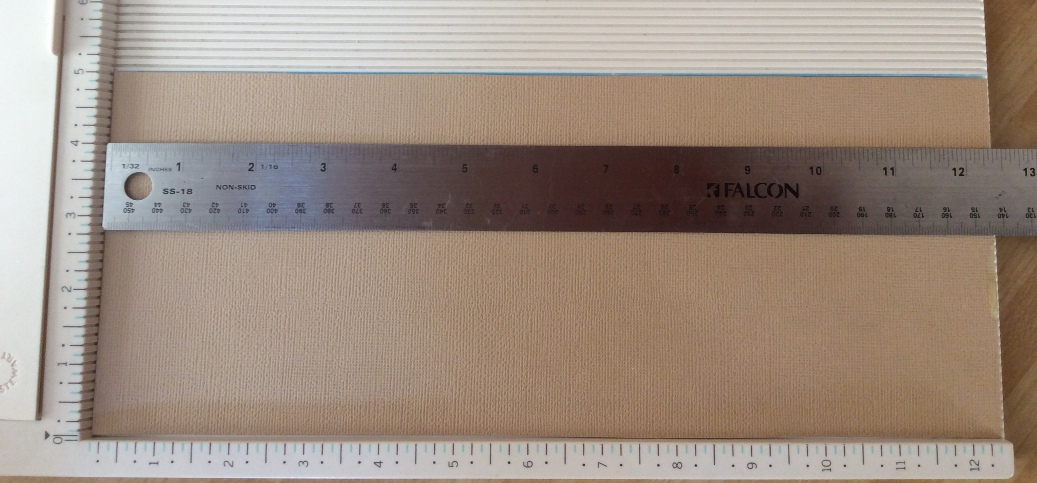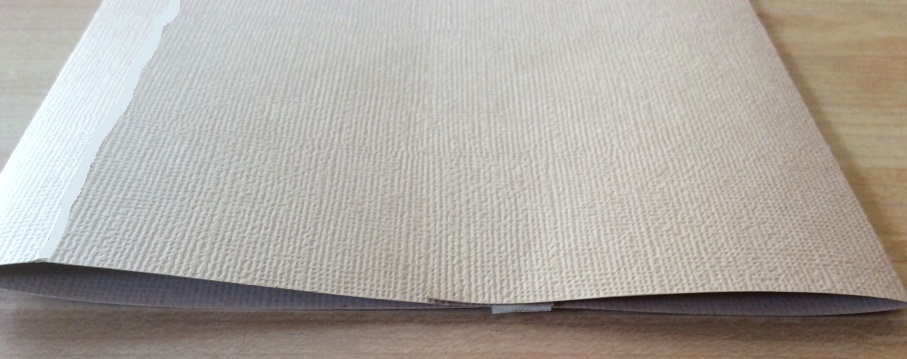 Here I am making a little flip album. Use the sheet of "Pebble" for this. Cut it into size 5" across, leaving the longest length as it is (Kaisercraft cardstock is always a little longer on one side with the log etc on the back this is the lng side you want to keep).