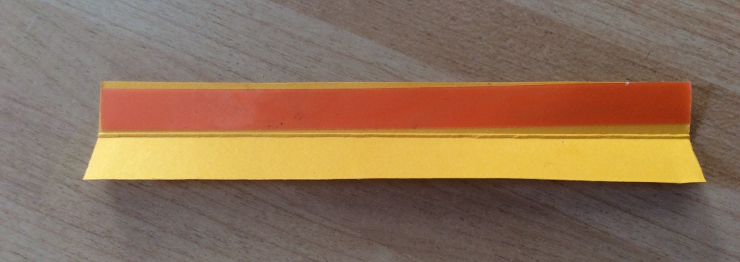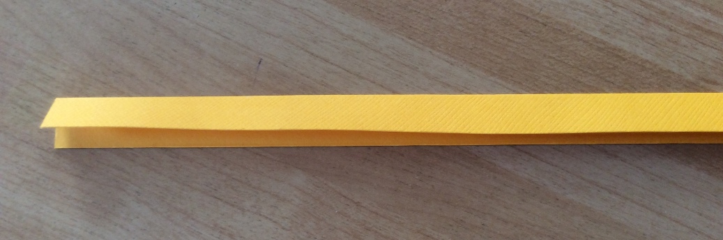 Cut three strip of Melon cardstock into size 1" x 5". Score at 1/2"