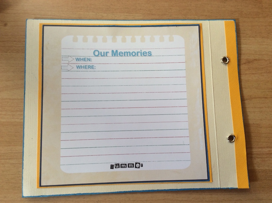 Attach securely to the page and add borders from "Kids at Play" either side. Add a blue band on the left-hand side (not shown here), BEFORE adding eyelets: