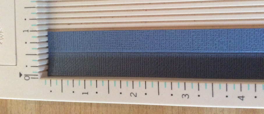 Cut two 6" x 1" strips from the blue cardstock. Score and fold at 1/2".