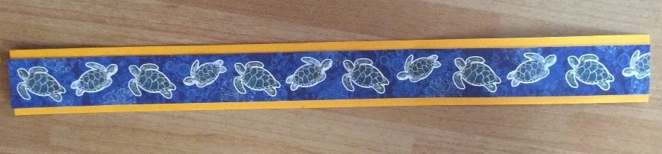 Cut a 1.25" strip from the Melon cardstock. Cut the turtle border from "Kids at Play". Adhere it on top of the melon cardstock strip.