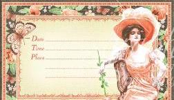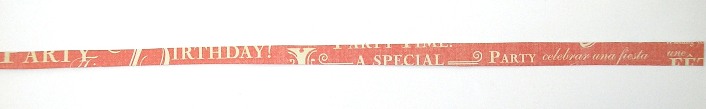 Cut a piece of "Grapefruit" cardstock, into size 17cm x 26cm. Fold it into a card size 17cm x 13cm. Wrap a piece of velvet ribbon around the top and bottom of the card. Cut the following panel out of the Time To Celebrate Paper "You're Invited" paper