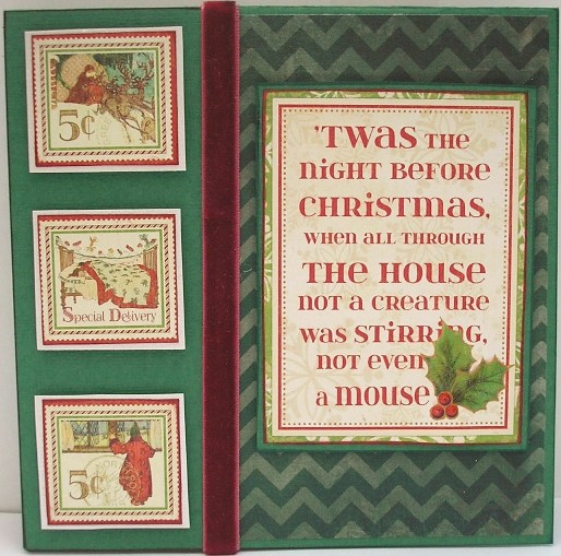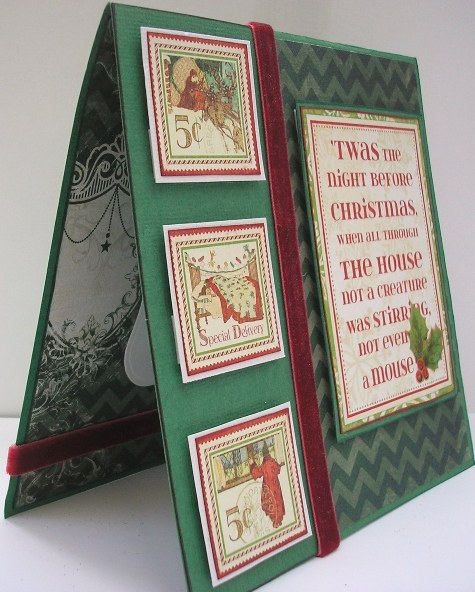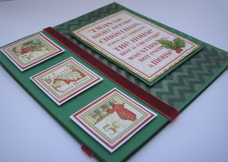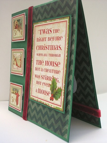Here I am using the Graphic 45 collection "Twas The Night Before Christmas" to make a bunch of super easy Christmas cards.
