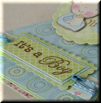 | Products used: Imaginisce "Baby Powder" Collection and K & Company Baby Boy Adhesive Chipboard Instructions This card just goes to show that very quick and simple cards can look fab!-with the help of some beautiful products.
