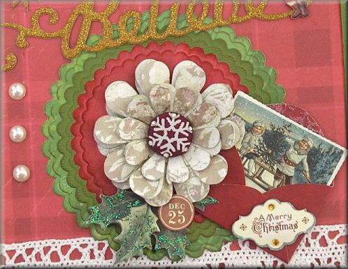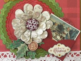 Add a Evergreen Grand Adhesion and a Memory pocket by the flower - I also added some green Stickles to the holly on the Grand Adhesion: