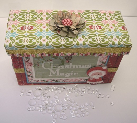 Cover the box in Basic Grey Eskimo Kisses Snow Cap paper