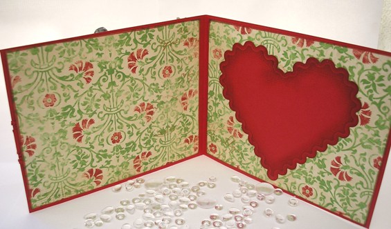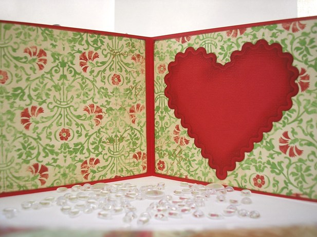 Starting from the tip of the heart line the edges just inside the cut-outs almost all the way up with 2mm foam tape and build up layers to make a space. You can build it up at the top to make it wider if you like. Stick the top heart on top.