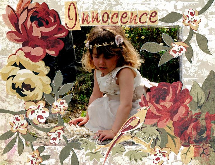 | Products used: Basic Grey Wassail Christmas Collection Quick Guide I cut the large rose from the patterned paper and also the beautiful bird design and then using one of the gorgeous brocade effect patterned papers as the background, I reassembled the pieces along with the matching chipboard stickers and paper stickers. Using the papers and stickers this way enabled me to make a frame for one large photo.