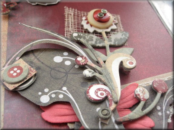 distressed red paper. Cut this into a circle just a bit bigger than your